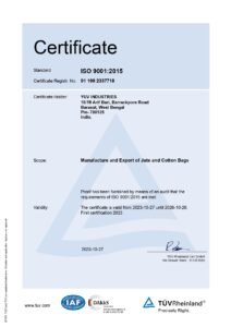 At YUV Industries we uphold the highest standards of quality and ethical practices in the manufacturing of jute bags. Our commitment to excellence is validated through the various certifications that we hold.